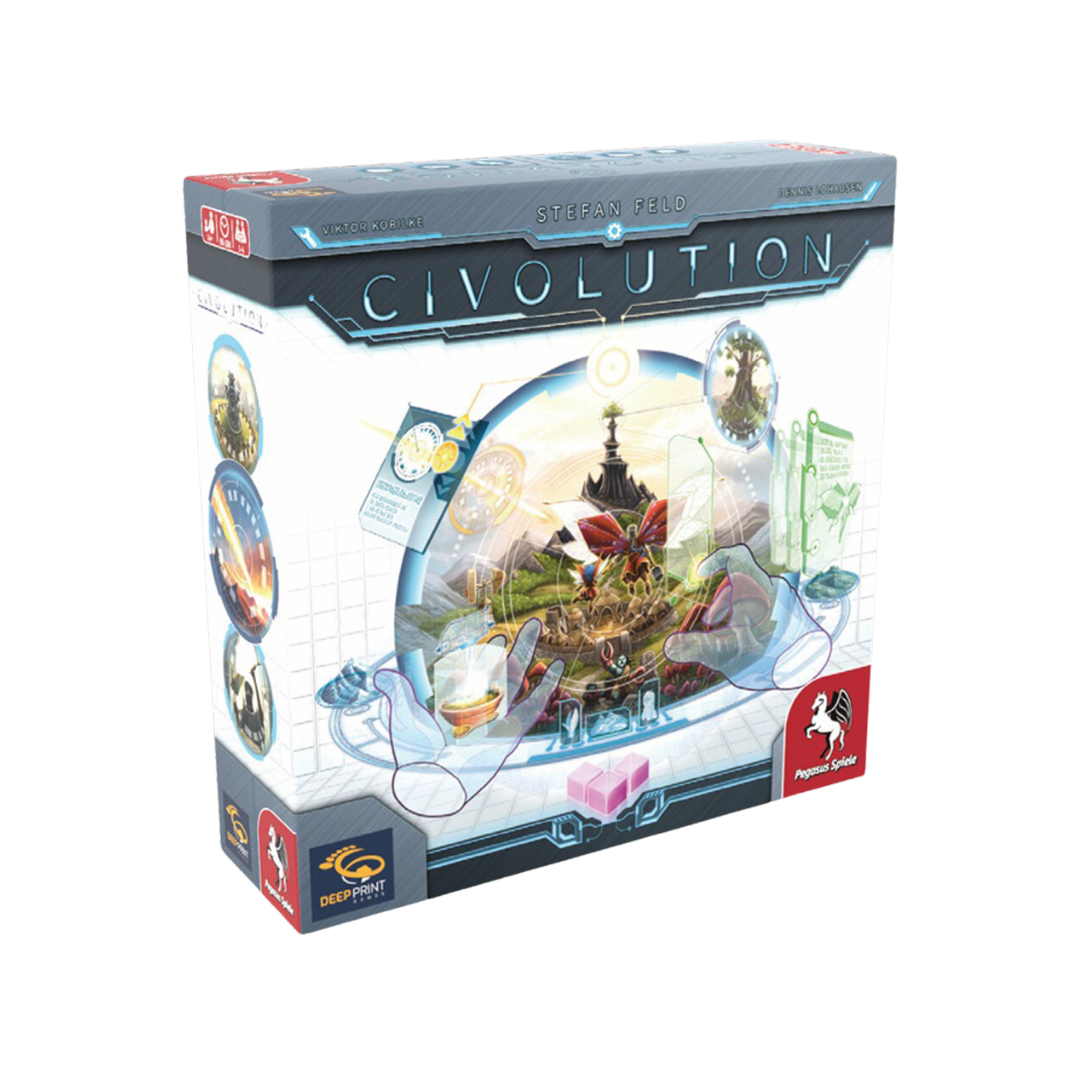 Civolution is a medium heavy to heavy euro-style game that utilizes a dice selection mechanism to trigger actions on a tech tree-like structure. As you figure out how to best use your dice and put your unique cards into play, tons of strategies and paths to victory emerge, though each time you play, you will only explore a fraction of the possibilities that the game’s system and many cards provide.