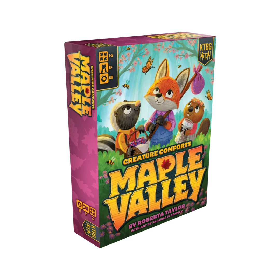 Set in the delightful world of Creature Comforts, Maple Valley is a game of traveling trails, finding friends, and celebrating new beginnings for 1-5 critters.