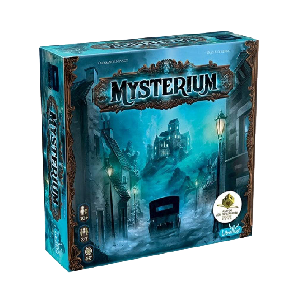 In Mysterium, a reworking of the game system present in Tajemnicze Domostwo, one player takes the role of ghost while everyone else represents a medium. To solve the crime, the ghost must first recall (with the aid of the mediums) all of the suspects present on the night of the murder. A number of suspect, location and murder weapon cards are placed on the table, and the ghost randomly assigns one of each of these in secret to a medium.