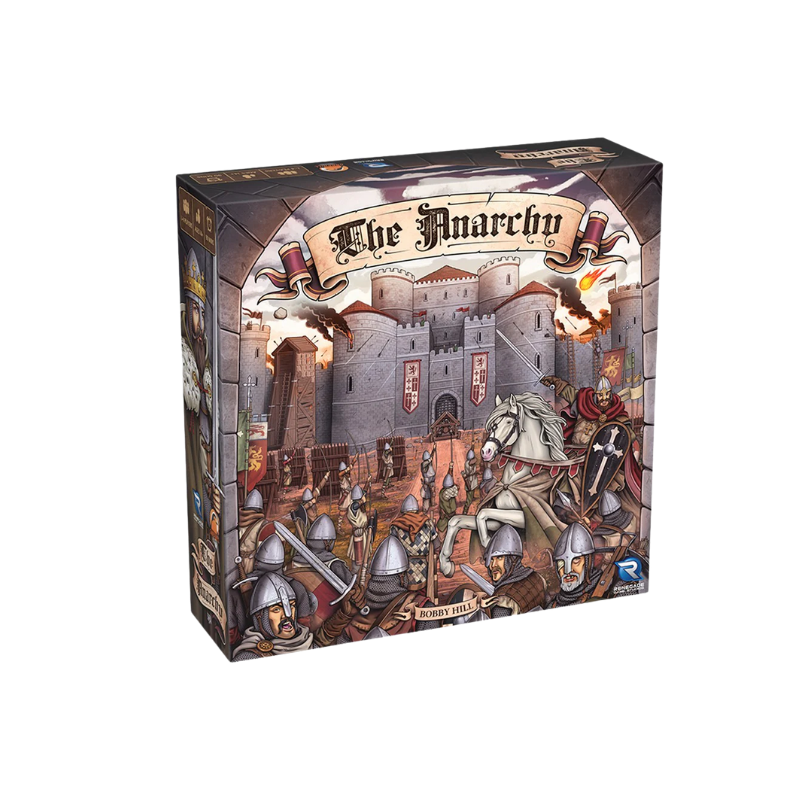 In The Anarchy, players take on the role of English nobles loyal to King Stephen. Over five rounds, players must build their domain, defend their castle from attacks by the approaching Angevin armies, and storm strongholds loyal to Matilda with their own crafted siege weapons. The player who can accumulate the most bravery, loyalty, influence and might — while avoiding discontent — will prove to King Stephen they are his most loyal ally, thereby earning his largest earldom.